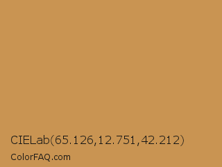 CIELab 65.126,12.751,42.212 Color is a normal orange color and the nearest color is Aztec Gold #c39953. Hex code #c99452 and RGB value is rgb(201,148,82). In RGB color space, this color is composed of 79% red, 58% green, 32% blue, In CMYK color space, this color is composed of 0% cyan, 26% magenta, 59% yellow , 21% black , In HSL color space, this color has a hue angle of 33° , 52% saturation and 55% lightness.