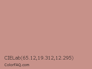 CIELab 65.12,19.312,12.295 Color is a light red color and the nearest color is Oriental Pink #c69191. Hex code #c79189 and RGB value is rgb(199,145,137). In RGB color space, this color is composed of 78% red, 57% green, 54% blue, In CMYK color space, this color is composed of 0% cyan, 27% magenta, 31% yellow , 22% black , In HSL color space, this color has a hue angle of 8° , 36% saturation and 66% lightness.