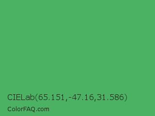 CIELab 65.151,-47.16,31.586 Color is a normal green color and the nearest color is Chateau Green #40a860. Hex code #4bb263 and RGB value is rgb(75,178,99). In RGB color space, this color is composed of 29% red, 70% green, 39% blue, In CMYK color space, this color is composed of 58% cyan, 0% magenta, 44% yellow , 30% black , In HSL color space, this color has a hue angle of 134° , 41% saturation and 50% lightness.