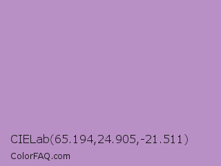CIELab 65.194,24.905,-21.511 Color is a light purple color and the nearest color is African Violet #b284be. Hex code #b990c5 and RGB value is rgb(185,144,197). In RGB color space, this color is composed of 73% red, 56% green, 77% blue, In CMYK color space, this color is composed of 6% cyan, 27% magenta, 0% yellow , 23% black , In HSL color space, this color has a hue angle of 286° , 31% saturation and 67% lightness.