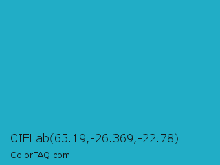 CIELab 65.19,-26.369,-22.78 Color is a normal cyan color and the nearest color is Pacific Blue #1ca9c9. Hex code #21adc6 and RGB value is rgb(33,173,198). In RGB color space, this color is composed of 13% red, 68% green, 78% blue, In CMYK color space, this color is composed of 83% cyan, 13% magenta, 0% yellow , 22% black , In HSL color space, this color has a hue angle of 189° , 71% saturation and 45% lightness.