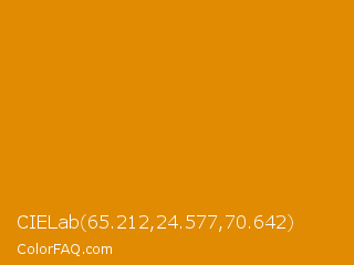 CIELab 65.212,24.577,70.642 Color is a normal orange color and the nearest color is Fulvous #e48400. Hex code #e08b01 and RGB value is rgb(224,139,1). In RGB color space, this color is composed of 88% red, 55% green, 0% blue, In CMYK color space, this color is composed of 0% cyan, 38% magenta, 100% yellow , 12% black , In HSL color space, this color has a hue angle of 37° , 99% saturation and 44% lightness.