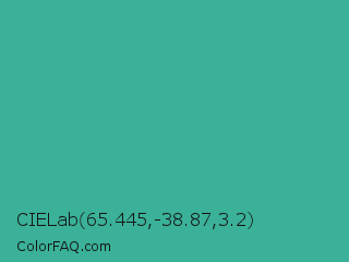 CIELab 65.445,-38.87,3.2 Color is a normal cyan color and the nearest color is Keppel #3ab09e. Hex code #3ab198 and RGB value is rgb(58,177,152). In RGB color space, this color is composed of 23% red, 69% green, 60% blue, In CMYK color space, this color is composed of 67% cyan, 0% magenta, 14% yellow , 31% black , In HSL color space, this color has a hue angle of 167° , 51% saturation and 46% lightness.