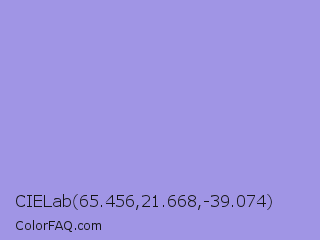 CIELab 65.456,21.668,-39.074 Color is a light indigo color and the nearest color is Dull Lavender #a899e6. Hex code #a095e5 and RGB value is rgb(160,149,229). In RGB color space, this color is composed of 63% red, 58% green, 90% blue, In CMYK color space, this color is composed of 30% cyan, 35% magenta, 0% yellow , 10% black , In HSL color space, this color has a hue angle of 248° , 61% saturation and 74% lightness.