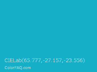 CIELab 65.777,-27.157,-23.556 Color is a normal cyan color and the nearest color is Pacific Blue #1ca9c9. Hex code #15afc9 and RGB value is rgb(21,175,201). In RGB color space, this color is composed of 8% red, 69% green, 79% blue, In CMYK color space, this color is composed of 90% cyan, 13% magenta, 0% yellow , 21% black , In HSL color space, this color has a hue angle of 189° , 81% saturation and 44% lightness.