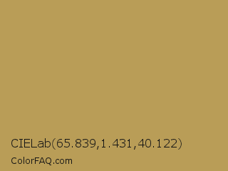 CIELab 65.839,1.431,40.122 Color is a normal orange color and the nearest color is Husk #b7a458. Hex code #b99d57 and RGB value is rgb(185,157,87). In RGB color space, this color is composed of 73% red, 62% green, 34% blue, In CMYK color space, this color is composed of 0% cyan, 15% magenta, 53% yellow , 27% black , In HSL color space, this color has a hue angle of 43° , 41% saturation and 53% lightness.