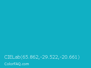 CIELab 65.862,-29.522,-20.661 Color is a normal cyan color and the nearest color is Pacific Blue #1ca9c9. Hex code #10b0c4 and RGB value is rgb(16,176,196). In RGB color space, this color is composed of 6% red, 69% green, 77% blue, In CMYK color space, this color is composed of 92% cyan, 10% magenta, 0% yellow , 23% black , In HSL color space, this color has a hue angle of 187° , 85% saturation and 42% lightness.