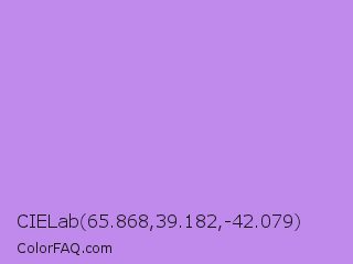 CIELab 65.868,39.182,-42.079 Color is a light purple color and the nearest color is Bright Lavender #bf94e4. Hex code #c089ec and RGB value is rgb(192,137,236). In RGB color space, this color is composed of 75% red, 54% green, 93% blue, In CMYK color space, this color is composed of 19% cyan, 42% magenta, 0% yellow , 7% black , In HSL color space, this color has a hue angle of 273° , 72% saturation and 73% lightness.