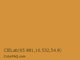 CIELab 65.881,16.532,54.8 Color is a normal orange color and the nearest color is Tigers Eye #e08d3c. Hex code #d4933a and RGB value is rgb(212,147,58). In RGB color space, this color is composed of 83% red, 58% green, 23% blue, In CMYK color space, this color is composed of 0% cyan, 31% magenta, 73% yellow , 17% black , In HSL color space, this color has a hue angle of 35° , 64% saturation and 53% lightness.