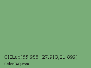 CIELab 65.988,-27.913,21.899 Color is a normal green color and the nearest color is Amulet #7b9f80. Hex code #79ad78 and RGB value is rgb(121,173,120). In RGB color space, this color is composed of 47% red, 68% green, 47% blue, In CMYK color space, this color is composed of 30% cyan, 0% magenta, 31% yellow , 32% black , In HSL color space, this color has a hue angle of 119° , 24% saturation and 57% lightness.