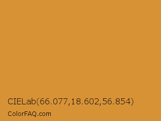 CIELab 66.077,18.602,56.854 Color is a normal orange color and the nearest color is Tigers Eye #e08d3c. Hex code #d89236 and RGB value is rgb(216,146,54). In RGB color space, this color is composed of 85% red, 57% green, 21% blue, In CMYK color space, this color is composed of 0% cyan, 32% magenta, 75% yellow , 15% black , In HSL color space, this color has a hue angle of 34° , 68% saturation and 53% lightness.