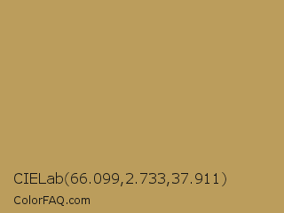CIELab 66.099,2.733,37.911 Color is a normal orange color and the nearest color is Husk #b7a458. Hex code #bb9d5c and RGB value is rgb(187,157,92). In RGB color space, this color is composed of 73% red, 62% green, 36% blue, In CMYK color space, this color is composed of 0% cyan, 16% magenta, 51% yellow , 27% black , In HSL color space, this color has a hue angle of 41° , 41% saturation and 55% lightness.