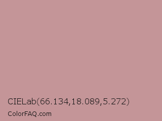 CIELab 66.134,18.089,5.272 Color is a light red color and the nearest color is Tuscany #c09999. Hex code #c49598 and RGB value is rgb(196,149,152). In RGB color space, this color is composed of 77% red, 58% green, 60% blue, In CMYK color space, this color is composed of 0% cyan, 24% magenta, 22% yellow , 23% black , In HSL color space, this color has a hue angle of 356° , 28% saturation and 68% lightness.