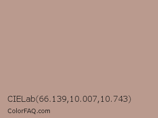 CIELab 66.139,10.007,10.743 Color is a light orange color and the nearest color is Quicksand #bd978e. Hex code #ba9a8e and RGB value is rgb(186,154,142). In RGB color space, this color is composed of 73% red, 60% green, 56% blue, In CMYK color space, this color is composed of 0% cyan, 17% magenta, 24% yellow , 27% black , In HSL color space, this color has a hue angle of 16° , 24% saturation and 64% lightness.