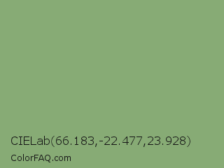 CIELab 66.183,-22.477,23.928 Color is a normal green color and the nearest color is Asparagus #87a96b. Hex code #87ab75 and RGB value is rgb(135,171,117). In RGB color space, this color is composed of 53% red, 67% green, 46% blue, In CMYK color space, this color is composed of 21% cyan, 0% magenta, 32% yellow , 33% black , In HSL color space, this color has a hue angle of 100° , 24% saturation and 56% lightness.