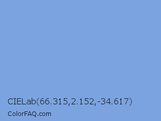 CIELab 66.315,2.152,-34.617 Color is a light blue color and the nearest color is Vista Blue #7c9ed9. Hex code #7ba3df and RGB value is rgb(123,163,223). In RGB color space, this color is composed of 48% red, 64% green, 87% blue, In CMYK color space, this color is composed of 45% cyan, 27% magenta, 0% yellow , 13% black , In HSL color space, this color has a hue angle of 216° , 61% saturation and 68% lightness.