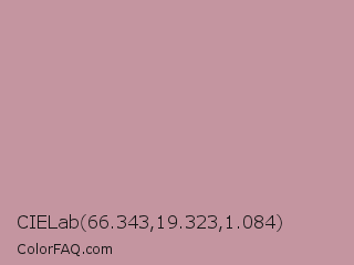 CIELab 66.343,19.323,1.084 Color is a light red color and the nearest color is Tuscany #c09999. Hex code #c495a0 and RGB value is rgb(196,149,160). In RGB color space, this color is composed of 77% red, 58% green, 63% blue, In CMYK color space, this color is composed of 0% cyan, 24% magenta, 18% yellow , 23% black , In HSL color space, this color has a hue angle of 346° , 28% saturation and 68% lightness.