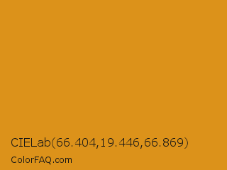 CIELab 66.404,19.446,66.869 Color is a normal orange color and the nearest color is Dixie #e29418. Hex code #dc921a and RGB value is rgb(220,146,26). In RGB color space, this color is composed of 86% red, 57% green, 10% blue, In CMYK color space, this color is composed of 0% cyan, 34% magenta, 88% yellow , 14% black , In HSL color space, this color has a hue angle of 37° , 79% saturation and 48% lightness.