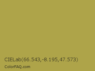 CIELab 66.543,-8.195,47.573 Color is a normal yellow color and the nearest color is Brass #b5a642. Hex code #aea449 and RGB value is rgb(174,164,73). In RGB color space, this color is composed of 68% red, 64% green, 29% blue, In CMYK color space, this color is composed of 0% cyan, 6% magenta, 58% yellow , 32% black , In HSL color space, this color has a hue angle of 54° , 41% saturation and 48% lightness.
