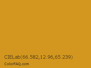 CIELab 66.582,12.96,65.239 Color is a normal orange color and the nearest color is Geebung #d18f1b. Hex code #d3971f and RGB value is rgb(211,151,31). In RGB color space, this color is composed of 83% red, 59% green, 12% blue, In CMYK color space, this color is composed of 0% cyan, 28% magenta, 85% yellow , 17% black , In HSL color space, this color has a hue angle of 40° , 74% saturation and 47% lightness.