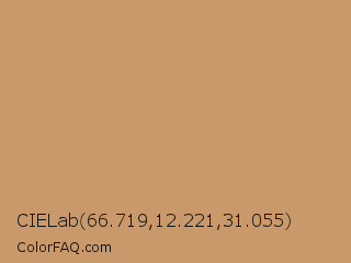 CIELab 66.719,12.221,31.055 Color is a normal orange color and the nearest color is Brown Yellow #cc9966. Hex code #c9996b and RGB value is rgb(201,153,107). In RGB color space, this color is composed of 79% red, 60% green, 42% blue, In CMYK color space, this color is composed of 0% cyan, 24% magenta, 47% yellow , 21% black , In HSL color space, this color has a hue angle of 29° , 47% saturation and 60% lightness.