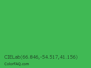 CIELab 66.846,-54.517,41.156 Color is a normal green color and the nearest color is Chateau Green #40a860. Hex code #40b954 and RGB value is rgb(64,185,84). In RGB color space, this color is composed of 25% red, 73% green, 33% blue, In CMYK color space, this color is composed of 65% cyan, 0% magenta, 55% yellow , 27% black , In HSL color space, this color has a hue angle of 130° , 49% saturation and 49% lightness.