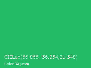 CIELab 66.866,-56.354,31.548 Color is a normal green color and the nearest color is Green Crayola #1cac78. Hex code #23ba67 and RGB value is rgb(35,186,103). In RGB color space, this color is composed of 14% red, 73% green, 40% blue, In CMYK color space, this color is composed of 81% cyan, 0% magenta, 45% yellow , 27% black , In HSL color space, this color has a hue angle of 147° , 68% saturation and 43% lightness.