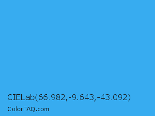 CIELab 66.982,-9.643,-43.092 Color is a normal blue color and the nearest color is Picton Blue #45b1e8. Hex code #37acf0 and RGB value is rgb(55,172,240). In RGB color space, this color is composed of 22% red, 67% green, 94% blue, In CMYK color space, this color is composed of 77% cyan, 28% magenta, 0% yellow , 6% black , In HSL color space, this color has a hue angle of 202° , 86% saturation and 58% lightness.