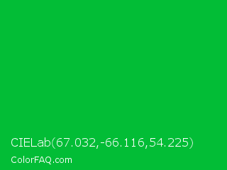 CIELab 67.032,-66.116,54.225 Color is a normal green color and the nearest color is Dark Pastel Green #03c03c. Hex code #02bd36 and RGB value is rgb(2,189,54). In RGB color space, this color is composed of 1% red, 74% green, 21% blue, In CMYK color space, this color is composed of 99% cyan, 0% magenta, 71% yellow , 26% black , In HSL color space, this color has a hue angle of 137° , 98% saturation and 37% lightness.