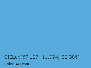 CIELab 67.127,-11.094,-32.386 Color is a light blue color and the nearest color is Shakespeare #4eabd1. Hex code #58acdd and RGB value is rgb(88,172,221). In RGB color space, this color is composed of 35% red, 67% green, 87% blue, In CMYK color space, this color is composed of 60% cyan, 22% magenta, 0% yellow , 13% black , In HSL color space, this color has a hue angle of 202° , 66% saturation and 61% lightness.