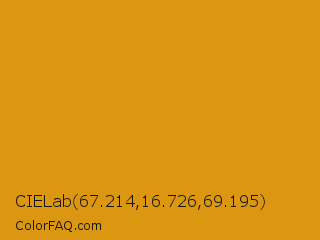 CIELab 67.214,16.726,69.195 Color is a normal orange color and the nearest color is Dixie #e29418. Hex code #db9612 and RGB value is rgb(219,150,18). In RGB color space, this color is composed of 86% red, 59% green, 7% blue, In CMYK color space, this color is composed of 0% cyan, 32% magenta, 92% yellow , 14% black , In HSL color space, this color has a hue angle of 39° , 85% saturation and 46% lightness.