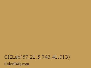 CIELab 67.21,5.743,41.013 Color is a normal orange color and the nearest color is Aztec Gold #c39953. Hex code #c49e59 and RGB value is rgb(196,158,89). In RGB color space, this color is composed of 77% red, 62% green, 35% blue, In CMYK color space, this color is composed of 0% cyan, 19% magenta, 55% yellow , 23% black , In HSL color space, this color has a hue angle of 39° , 48% saturation and 56% lightness.