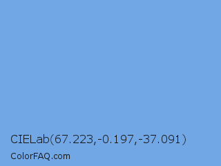 CIELab 67.223,-0.197,-37.091 Color is a light blue color and the nearest color is Little Boy Blue #6ca0dc. Hex code #72a7e6 and RGB value is rgb(114,167,230). In RGB color space, this color is composed of 45% red, 65% green, 90% blue, In CMYK color space, this color is composed of 50% cyan, 27% magenta, 0% yellow , 10% black , In HSL color space, this color has a hue angle of 213° , 70% saturation and 67% lightness.