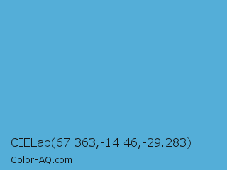CIELab 67.363,-14.46,-29.283 Color is a normal blue color and the nearest color is Shakespeare #4eabd1. Hex code #54aed8 and RGB value is rgb(84,174,216). In RGB color space, this color is composed of 33% red, 68% green, 85% blue, In CMYK color space, this color is composed of 61% cyan, 19% magenta, 0% yellow , 15% black , In HSL color space, this color has a hue angle of 199° , 63% saturation and 59% lightness.