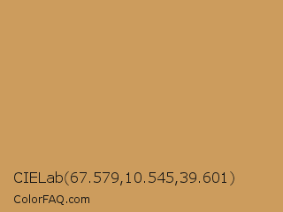 CIELab 67.579,10.545,39.601 Color is a normal orange color and the nearest color is Brown Yellow #cc9966. Hex code #cc9c5d and RGB value is rgb(204,156,93). In RGB color space, this color is composed of 80% red, 61% green, 36% blue, In CMYK color space, this color is composed of 0% cyan, 24% magenta, 54% yellow , 20% black , In HSL color space, this color has a hue angle of 34° , 52% saturation and 58% lightness.