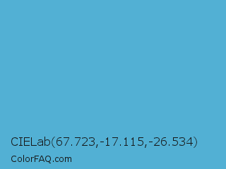 CIELab 67.723,-17.115,-26.534 Color is a normal blue color and the nearest color is Shakespeare #4eabd1. Hex code #52b0d4 and RGB value is rgb(82,176,212). In RGB color space, this color is composed of 32% red, 69% green, 83% blue, In CMYK color space, this color is composed of 61% cyan, 17% magenta, 0% yellow , 17% black , In HSL color space, this color has a hue angle of 197° , 60% saturation and 58% lightness.