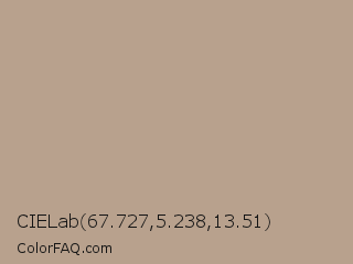 CIELab 67.727,5.238,13.51 Color is a light orange color and the nearest color is Quicksand #bd978e. Hex code #b8a18d and RGB value is rgb(184,161,141). In RGB color space, this color is composed of 72% red, 63% green, 55% blue, In CMYK color space, this color is composed of 0% cyan, 13% magenta, 23% yellow , 28% black , In HSL color space, this color has a hue angle of 28° , 23% saturation and 64% lightness.