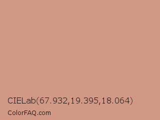 CIELab 67.932,19.395,18.064 Color is a light red color and the nearest color is My Pink #d69188. Hex code #d29886 and RGB value is rgb(210,152,134). In RGB color space, this color is composed of 82% red, 60% green, 53% blue, In CMYK color space, this color is composed of 0% cyan, 28% magenta, 36% yellow , 18% black , In HSL color space, this color has a hue angle of 14° , 46% saturation and 67% lightness.