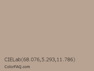 CIELab 68.076,5.293,11.786 Color is a light orange color and the nearest color is Thatch #b69d98. Hex code #b8a291 and RGB value is rgb(184,162,145). In RGB color space, this color is composed of 72% red, 64% green, 57% blue, In CMYK color space, this color is composed of 0% cyan, 12% magenta, 21% yellow , 28% black , In HSL color space, this color has a hue angle of 26° , 22% saturation and 65% lightness.