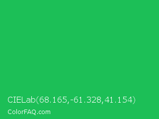 CIELab 68.165,-61.328,41.154 Color is a normal green color and the nearest color is Malachite #0bda51. Hex code #1cbf57 and RGB value is rgb(28,191,87). In RGB color space, this color is composed of 11% red, 75% green, 34% blue, In CMYK color space, this color is composed of 85% cyan, 0% magenta, 54% yellow , 25% black , In HSL color space, this color has a hue angle of 142° , 74% saturation and 43% lightness.