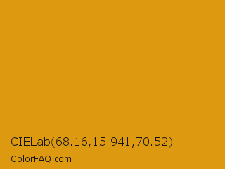 CIELab 68.16,15.941,70.52 Color is a normal orange color and the nearest color is Gamboge #e49b0f. Hex code #dd990f and RGB value is rgb(221,153,15). In RGB color space, this color is composed of 87% red, 60% green, 6% blue, In CMYK color space, this color is composed of 0% cyan, 31% magenta, 93% yellow , 13% black , In HSL color space, this color has a hue angle of 40° , 87% saturation and 46% lightness.