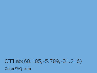 CIELab 68.185,-5.789,-31.216 Color is a light blue color and the nearest color is Little Boy Blue #6ca0dc. Hex code #70acde and RGB value is rgb(112,172,222). In RGB color space, this color is composed of 44% red, 67% green, 87% blue, In CMYK color space, this color is composed of 50% cyan, 23% magenta, 0% yellow , 13% black , In HSL color space, this color has a hue angle of 207° , 63% saturation and 65% lightness.