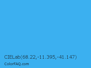 CIELab 68.22,-11.395,-41.147 Color is a normal blue color and the nearest color is Picton Blue #45b1e8. Hex code #3bb0f0 and RGB value is rgb(59,176,240). In RGB color space, this color is composed of 23% red, 69% green, 94% blue, In CMYK color space, this color is composed of 75% cyan, 27% magenta, 0% yellow , 6% black , In HSL color space, this color has a hue angle of 201° , 86% saturation and 59% lightness.