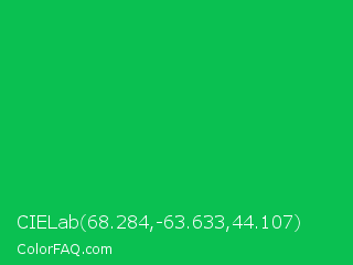 CIELab 68.284,-63.633,44.107 Color is a normal green color and the nearest color is Dark Pastel Green #03c03c. Hex code #0ac051 and RGB value is rgb(10,192,81). In RGB color space, this color is composed of 4% red, 75% green, 32% blue, In CMYK color space, this color is composed of 95% cyan, 0% magenta, 58% yellow , 25% black , In HSL color space, this color has a hue angle of 143° , 90% saturation and 40% lightness.