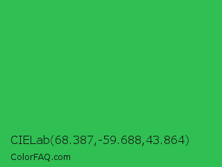 CIELab 68.387,-59.688,43.864 Color is a normal green color and the nearest color is Chateau Green #40a860. Hex code #30bf52 and RGB value is rgb(48,191,82). In RGB color space, this color is composed of 19% red, 75% green, 32% blue, In CMYK color space, this color is composed of 75% cyan, 0% magenta, 57% yellow , 25% black , In HSL color space, this color has a hue angle of 134° , 60% saturation and 47% lightness.