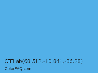 CIELab 68.512,-10.841,-36.28 Color is a light blue color and the nearest color is Blue Jeans #5dadec. Hex code #52b0e8 and RGB value is rgb(82,176,232). In RGB color space, this color is composed of 32% red, 69% green, 91% blue, In CMYK color space, this color is composed of 65% cyan, 24% magenta, 0% yellow , 9% black , In HSL color space, this color has a hue angle of 202° , 77% saturation and 62% lightness.