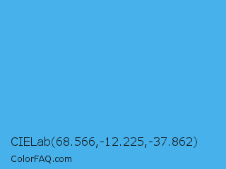 CIELab 68.566,-12.225,-37.862 Color is a normal blue color and the nearest color is Picton Blue #45b1e8. Hex code #46b1eb and RGB value is rgb(70,177,235). In RGB color space, this color is composed of 27% red, 69% green, 92% blue, In CMYK color space, this color is composed of 70% cyan, 25% magenta, 0% yellow , 8% black , In HSL color space, this color has a hue angle of 201° , 80% saturation and 60% lightness.