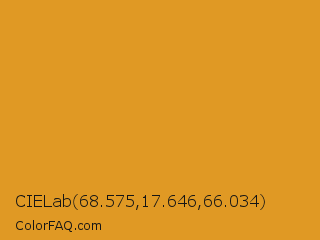 CIELab 68.575,17.646,66.034 Color is a normal orange color and the nearest color is Fire Bush #e89928. Hex code #e09924 and RGB value is rgb(224,153,36). In RGB color space, this color is composed of 88% red, 60% green, 14% blue, In CMYK color space, this color is composed of 0% cyan, 32% magenta, 84% yellow , 12% black , In HSL color space, this color has a hue angle of 37° , 75% saturation and 51% lightness.