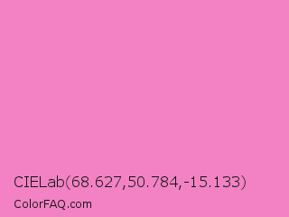 CIELab 68.627,50.784,-15.133 Color is a light magenta color and the nearest color is Persian Pink #f77fbe. Hex code #f282c4 and RGB value is rgb(242,130,196). In RGB color space, this color is composed of 95% red, 51% green, 77% blue, In CMYK color space, this color is composed of 0% cyan, 46% magenta, 19% yellow , 5% black , In HSL color space, this color has a hue angle of 325° , 81% saturation and 73% lightness.