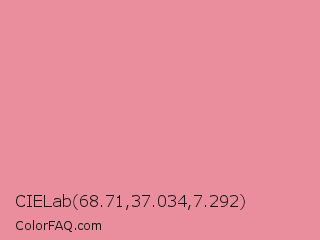 CIELab 68.71,37.034,7.292 Color is a light red color and the nearest color is Ruddy Pink #e18e96. Hex code #ea8d9c and RGB value is rgb(234,141,156). In RGB color space, this color is composed of 92% red, 55% green, 61% blue, In CMYK color space, this color is composed of 0% cyan, 40% magenta, 33% yellow , 8% black , In HSL color space, this color has a hue angle of 350° , 69% saturation and 74% lightness.